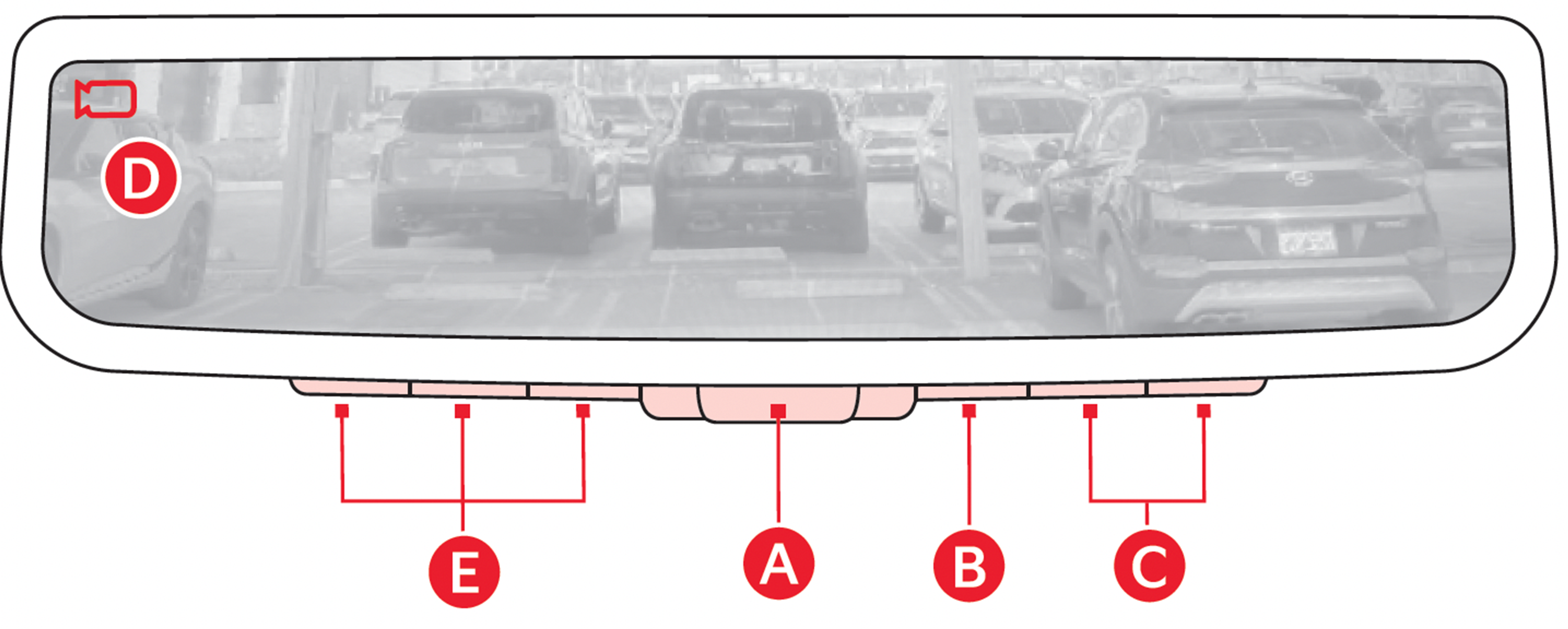 Full Display Mirror, or FDM, allows the driver to switch the rearview mirror from standard optical view to digital display view.