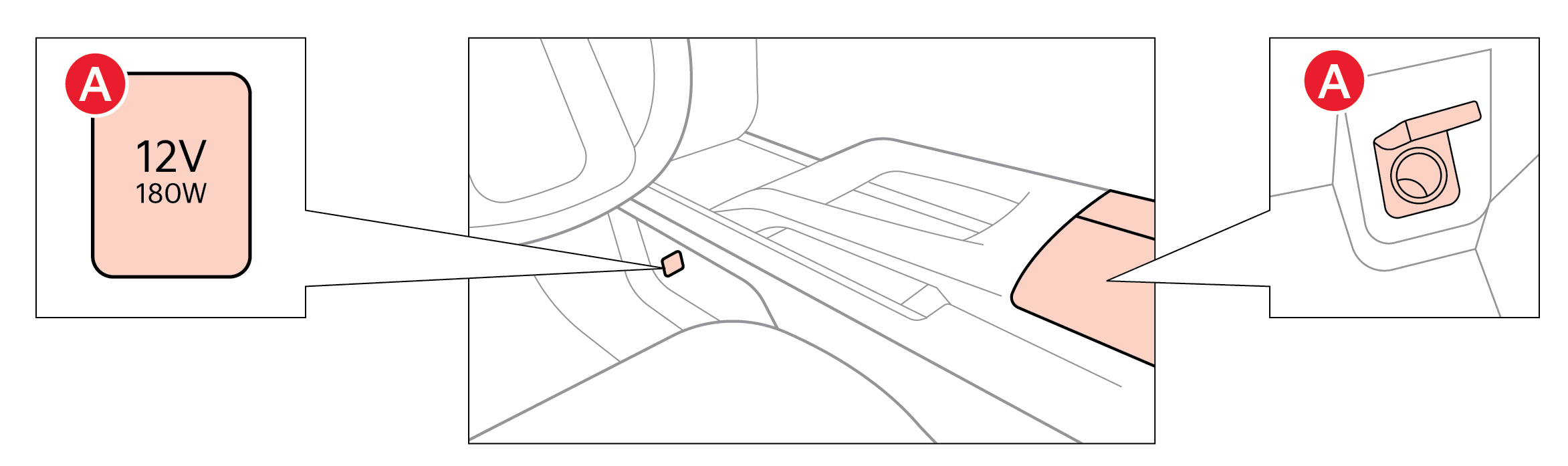 : Use the power outlets for mobile phones and other devices designed to operate on a 12V (180W max) power outlet.