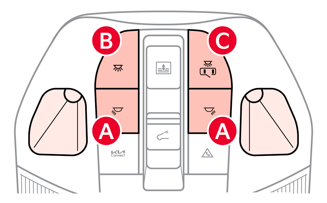 Map Lamps – These lights produce spot beams for convenient use as map lamps or as personal lamps for the driver or the front passenger. Press the buttons